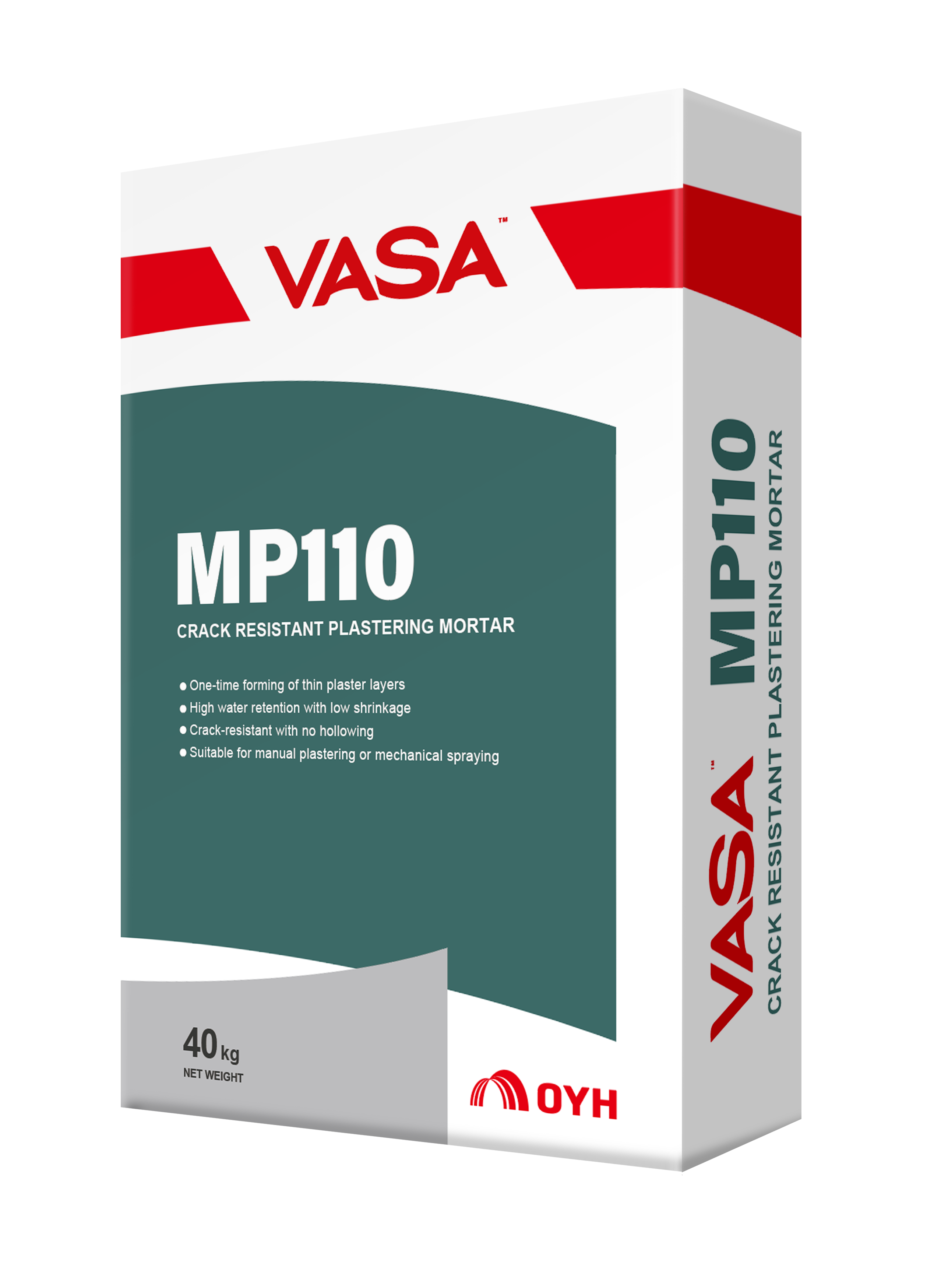 VASA® MP110 Crack Resistant Plastering Mortar is a product formulated with high-quality cement as the inorganic binder, fine sand as the aggregate, and a variety of additives. It is ready to use after being mixed with water on-site in a specified proportion. This mortar is ideal for thin plaster leveling on relatively smooth substrates and is characterized by its excellent workability and wide range of applications.