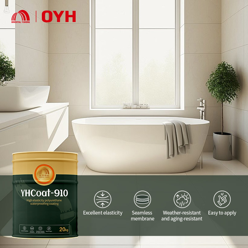 YHCoat-910 is a single-component, cold applied, moisture-cured polyurethane waterproofing membrane. It cures to form a seamless and durable waterproofing layer intended for use as the base coat under aliphatic top coat for exposed roof areas, as well as below tiles or mortar protecting layer on balconies terraces and other non-exposed waterproof projects.