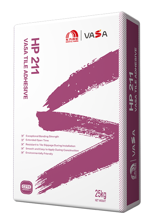 VASA® Tile Adhesive HP 211 (High Performence Extended Open Time) is formulated using high-quality cement as an inorganic bonding material, finely selected graded sand as the aggregate, and a blend of various polymers and functional additives. This product is prepared for use by simply adding water and stirring. The recommended adhesive layer thickness ranges from 3mm to 10mm.