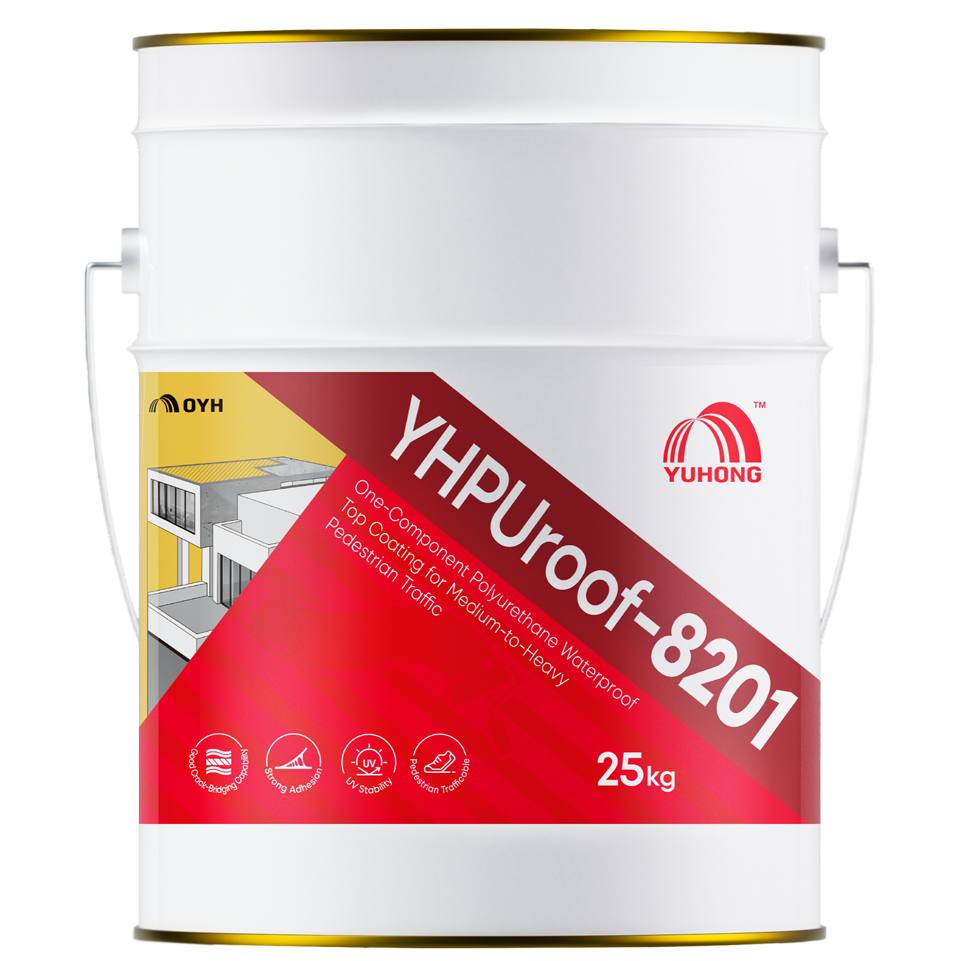 YHPUroof-8201 is a single-component, cold-applied, moisture-cured aliphatic polyurethane waterproofing membrane that forms a seamless and durable layer for outdoor applications with medium-to-heavy pedestrian traffic. lt can be used independently or as a top layer over an aromatic polyurethane base coat, such as YHPUroof-8200, for enhanced performance and longevity.