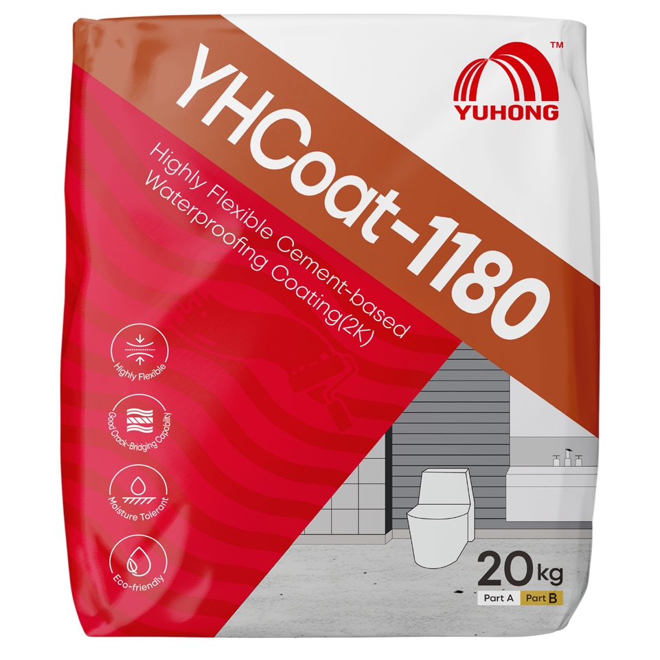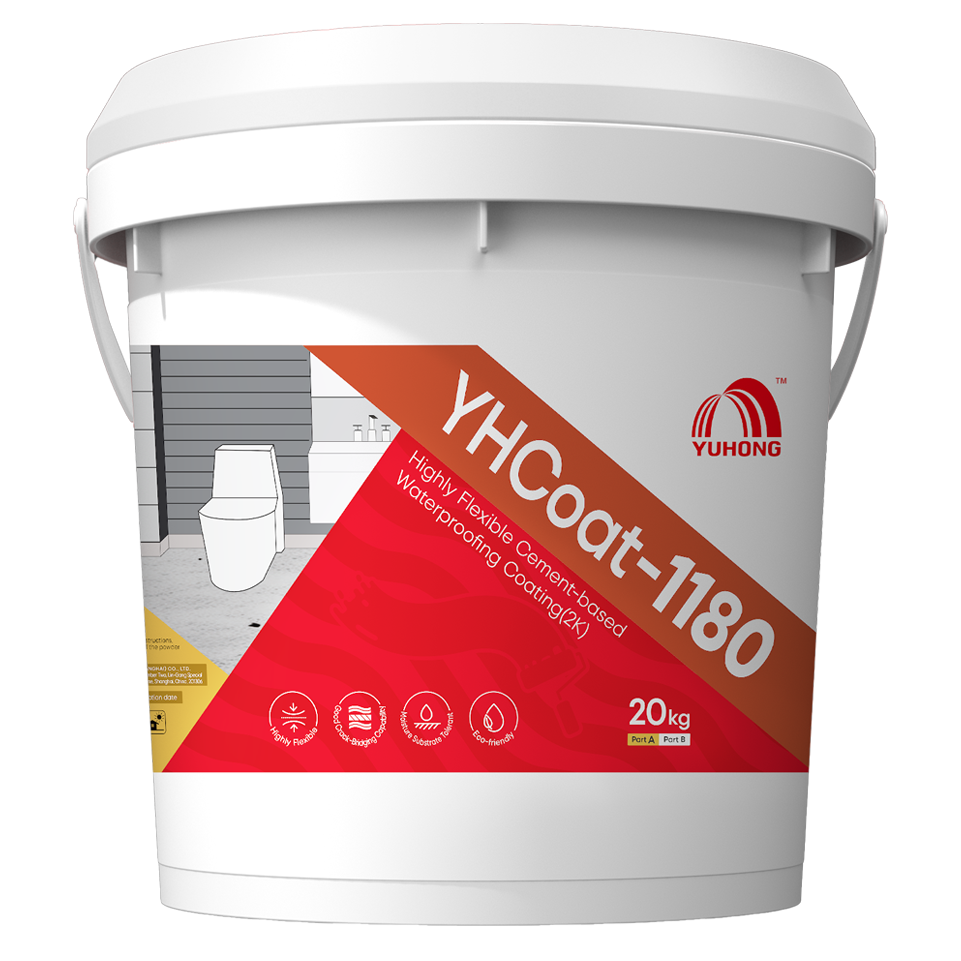 YHCoat-1180 is a two-component waterproof coating. Component A consists of high-quality modified polymer emulsion and various additives. Component B consists of iron-rich containing and high-alumina cement. YHCoat-1180 has outstanding performance and forms seamless membranes.