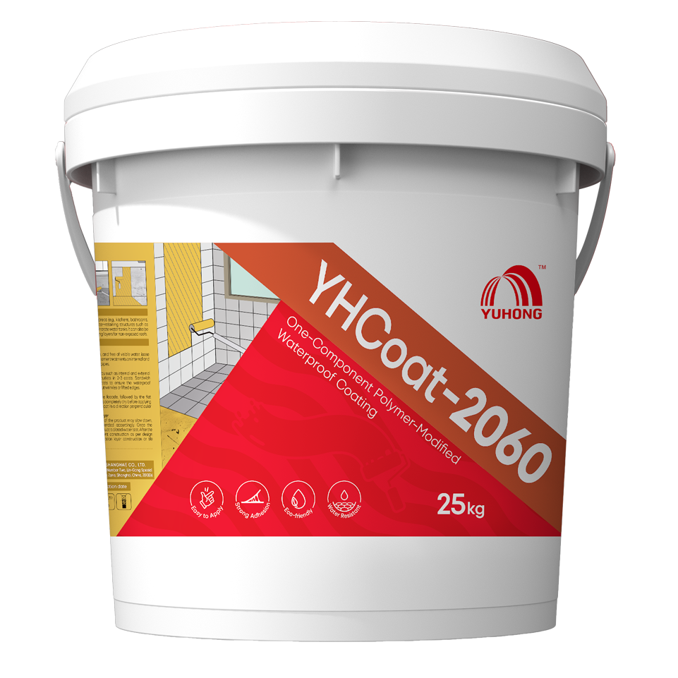 YHCoat-2060 is a one-component waterproofing coating formulated with a highly active polymer emulsion as its primary film-forming agent. Enhanced with specialized inorganic components and functional additive, it offers high solid content, excellent water resistance (suitable for long-term water immersion), and superior workability. The cured membrane provides a keyed finish to promote direct tile adhesion with cement-based tile adhesive.